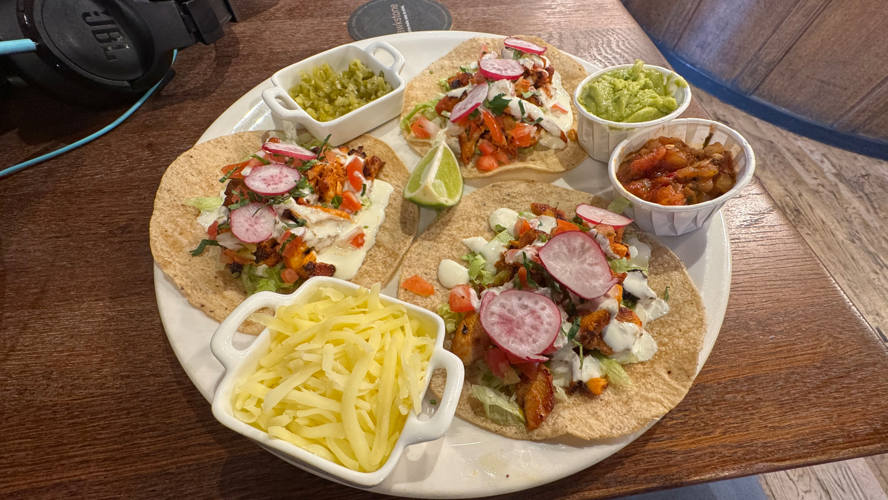Then I went to The Queen’s Head as the Internet was out at home. I had a couple of beers and some Chicken Tikka Tacos for lunch.